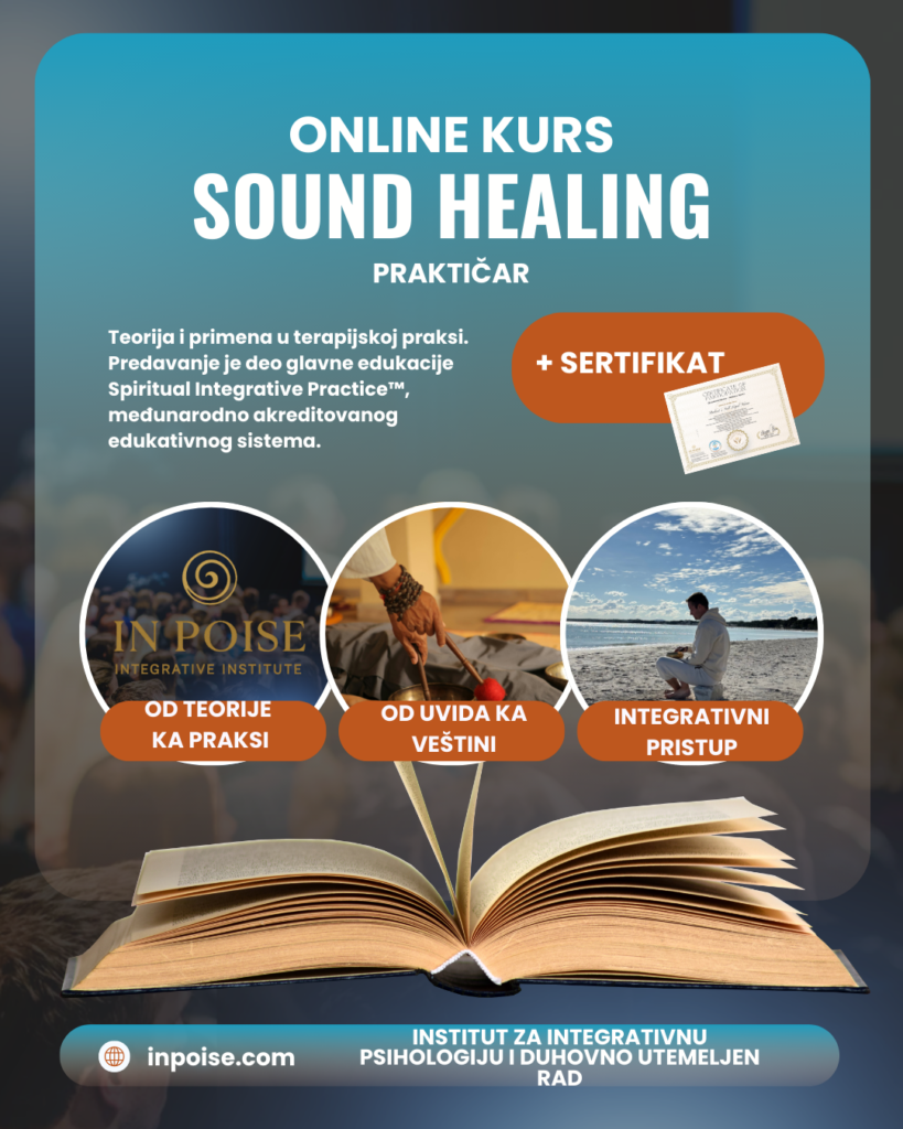 i ovladaj transformativnom metodologijom koja povezuje psihologiju, telo, energiju i duhovnost kroz dubinske integrativne procese. Program je strukturiran kroz dva nivoa od lične transformacije do profesionalne prakse uz superviziju i praktičan rad.