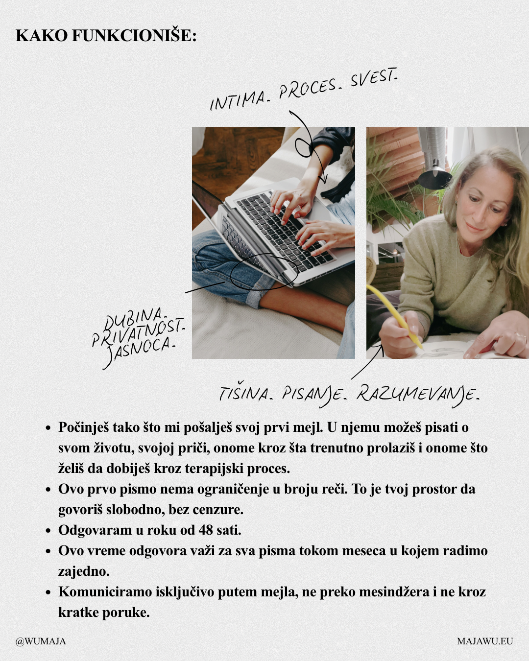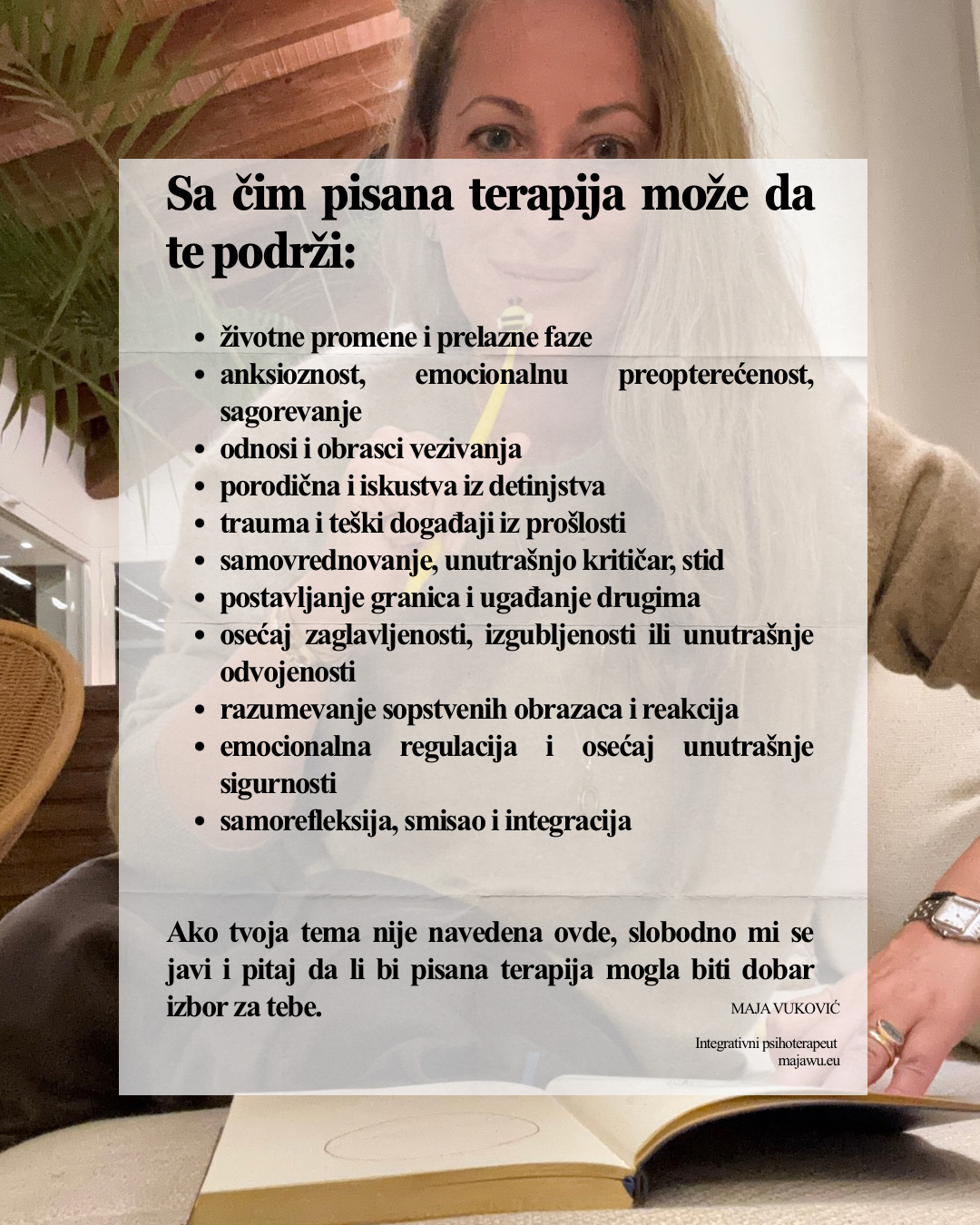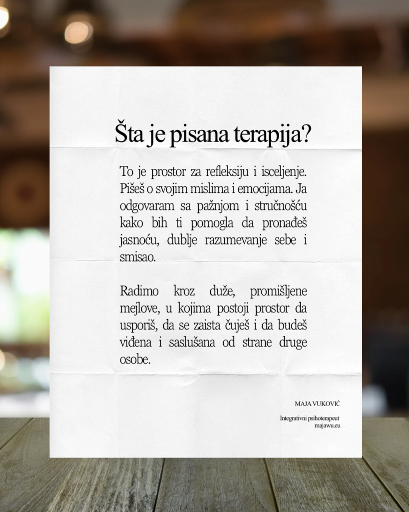 U tom pismu možeš pisati o svom životu, trenutnoj situaciji, odnosima, emocionalnim teškoćama, pitanjima ili temama koje želiš da razumeš.