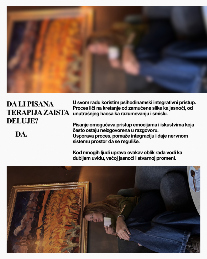 Ovo je strukturiran terapijski proces u kojem se psihološki rad odvija kroz pažljivo čitanje, razumevanje i promišljene terapijske odgovore.